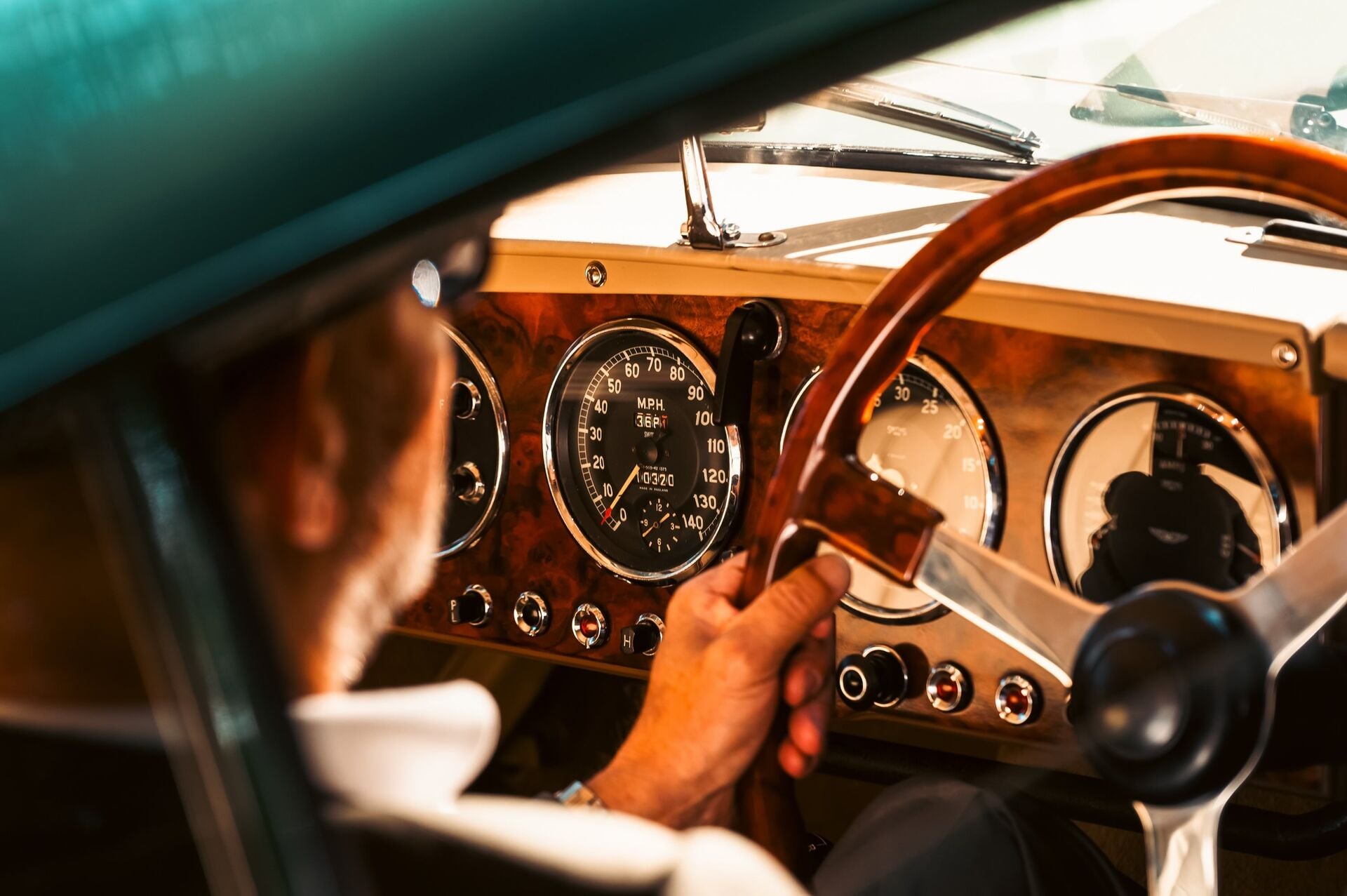 Wer ihn fährt, wird sich auf den besonderen Charakter einlassen müssen. Was dieser Aston Martin DB2/4 akustisch und fahrdynamisch liefert, übersteigt jede Erwartung an ein fast 70-jähriges Automobil. Der Motor tritt mit verblüffender Vehemenz an, das manuelle Getriebe schaltet knackig und präzise. Die Bremsen – Servo-Unterstützung gibt’s woanders – verlangen Gefühl, vermitteln aber ehrliche Rückmeldung. Die Lenkung ist nichts für nebenbei oder eine Hand – sie fordert, belohnt aber mit einem intensiven Fahrgefühl.
