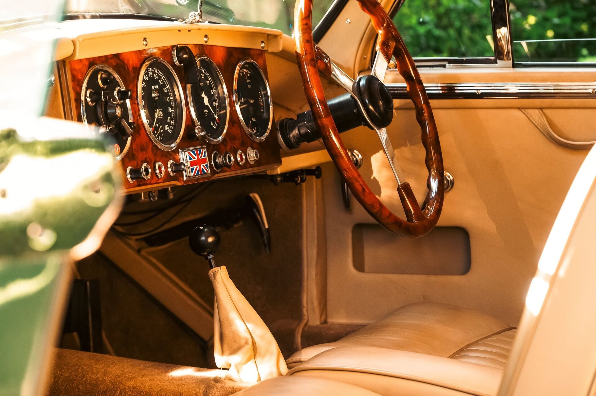 Und dann gibt es da dieses eine Exemplar, das selbst unter diesen Exzentrikern hervorsticht: das mit der Chassisnummer LML/649. Erstzulassung: 2. Juni 1954. Farbe: Sea Green. Besitzer: ein gewisser Mr. Grahame S. Bourne. Der Mann behielt das Auto sage und schreibe 54 Jahre lang – wahrscheinlich länger als seine erste Ehe. Länger als wohl die meisten Ehen. Über 170.000 Kilometer fuhr er ihn, bevor das Fahrzeug in den Ruhestand ging. 2015 dann der Auftritt bei Bonhams in London. Eine Zeitkapsel auf vier Rädern. Der Zustand? Nennen wir es mal „authentisch“. Das Leder? Ermüdet. Die Technik? Sie hatte ihren Frieden gefunden.