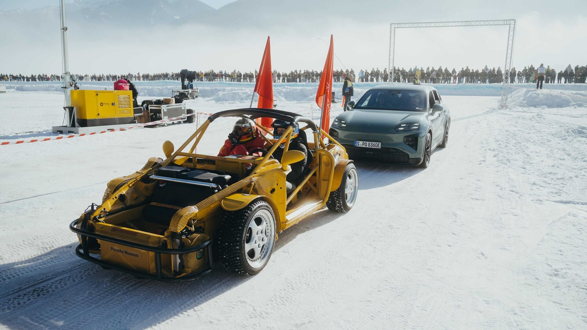2026 feierte hier der neue Cayenne Electric seine Premiere. Und zeigte, in welcher Klasse er künftig spielen wird: 850 kW, 1156 PS, 1500 Nm Drehmoment. Auf Eis. Während ein wiederbelebter 964-Buggy quer durch den Schnee pflügte, zog das Elektro-SUV seine präzisen Drift-Runden – fast lautlos. Hier liegt die Magie des FAT Ice Race: Es geht um Kontraste. Um das Nebeneinander von luftgekühltem 356 und Hochvolt-Cayenne.