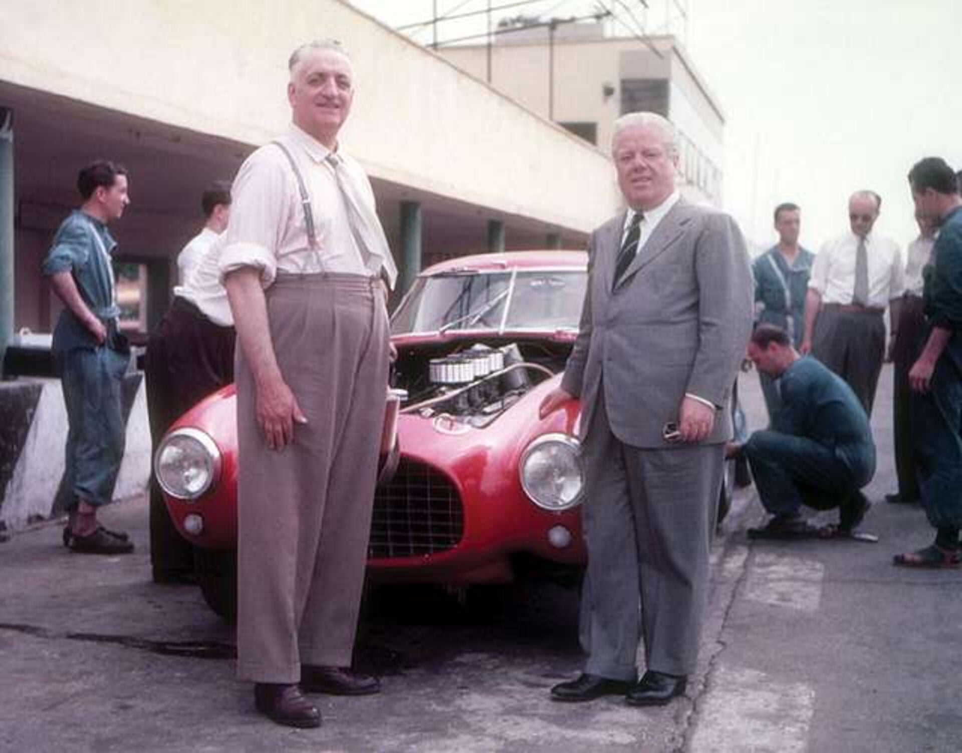 La percée est survenue après la Seconde Guerre mondiale – et avec elle, un partenariat qui a marqué l’histoire de l’automobile : la collaboration avec Ferrari. En mai 1951, Enzo Ferrari et Battista Pininfarina se sont rencontrés pour la première fois en personne – à mi-chemin entre leurs sièges sociaux, car les deux hommes étaient trop fiers pour se rendre chez l’autre. Lieu de la rencontre : un restaurant à Tortona, situé presque exactement à mi-chemin entre Turin (Pininfarina) et Modène (Ferrari). Peu après cette rencontre, la première Ferrari dessinée par Pininfarina vit le jour : la Ferrari 212 Inter. Ce fut la première voiture de route Gran Turismo produite par Ferrari de 1951 à 1952. Elle a marqué le passage de Ferrari des voitures de course pures à d’élégantes GT de luxe adaptées à la route. C’est ainsi qu’a été donné le coup d’envoi d’un partenariat qui, pendant des décennies, est devenu pratiquement synonyme du design Ferrari.