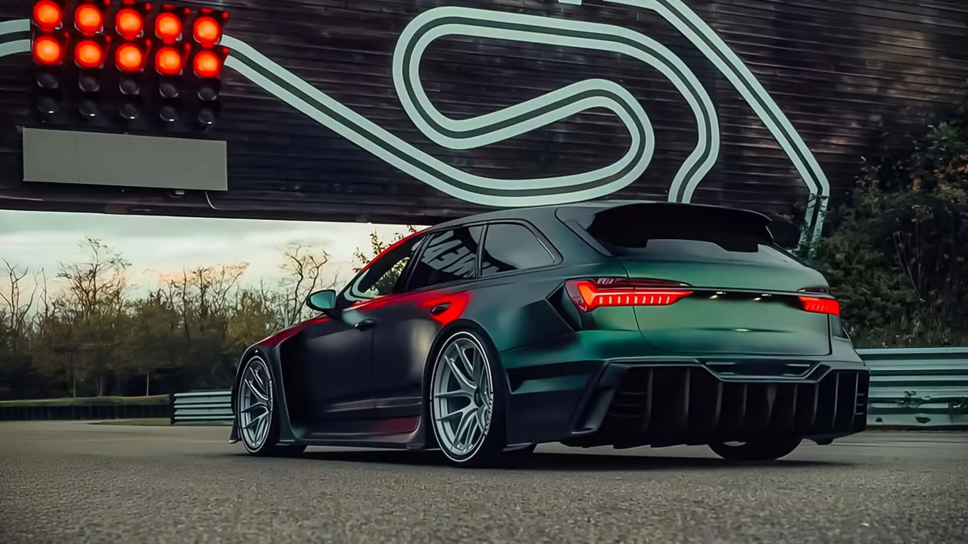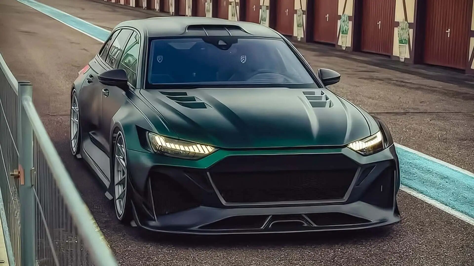 La base de ce jet familial est une Audi RS6 Avant, déjà impressionnante en soi. Mais chez Motoren Technik Mayer à Domat/Ems, l'Audi est d'abord démontée. Puis reconstruite en carbone. La carrosserie large est composée de ce matériau composite léger jusqu'au toit. À cela s'ajoutent un diffuseur, des ailes et des prises d'air, tous conçus, développés et construits en interne. Résultat : 5,13 m de long, 2,12 m de large, soit 13 cm de plus et 17 cm de largeur en plus que le modèle d'origine. Tout cela est nécessaire pour transmettre la puissance au sol.