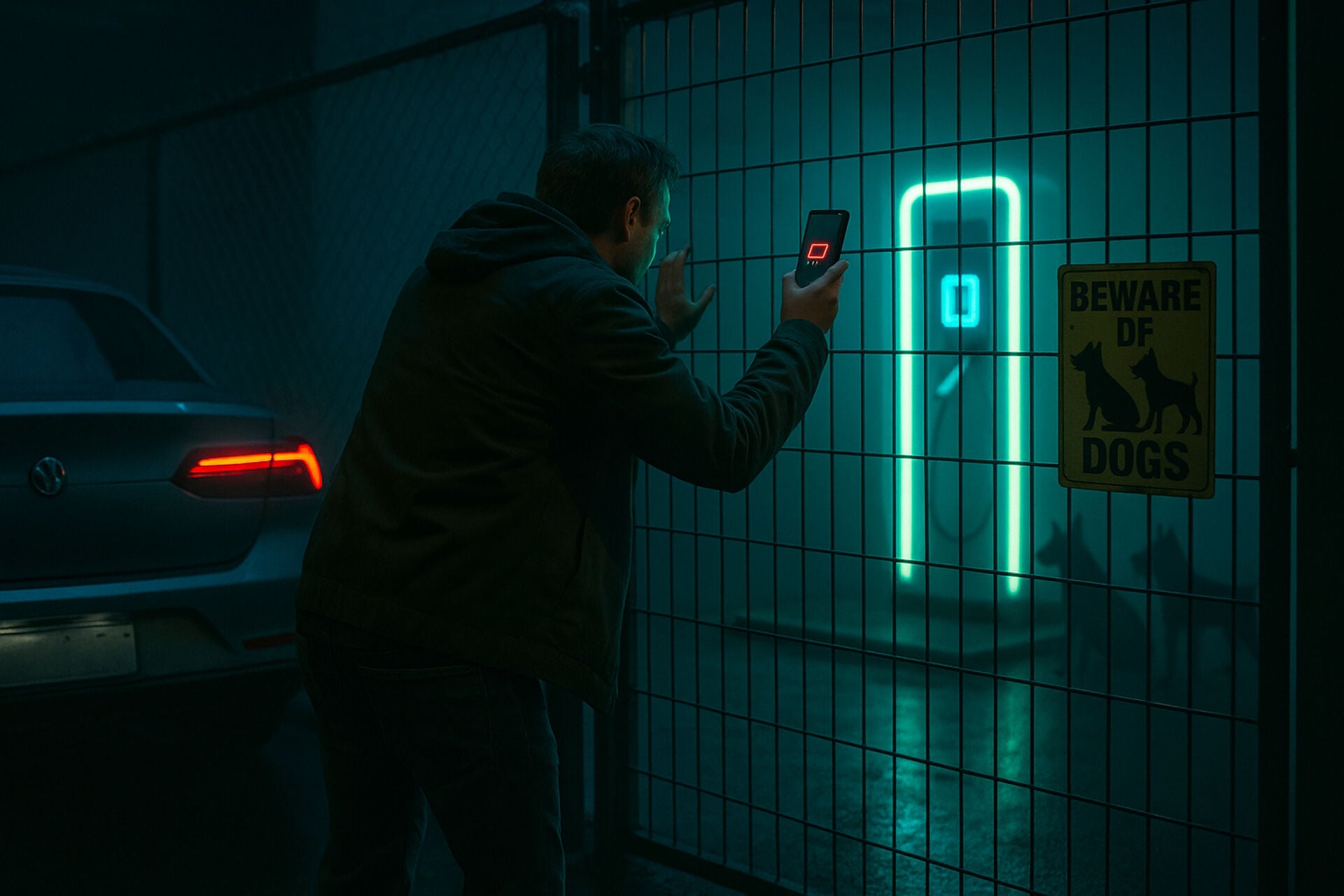 À la recherche d'électrons, on se comporte parfois comme un toxicomane en manque. On parcourt nerveusement les banlieues, on se dirige vers des arrière-cours sombres où, selon le GPS, une borne de recharge devrait se trouver – pour constater ensuite qu'elle se cache derrière une grille fermée, gardée par des chiens enchaînés qui semblent enragés.